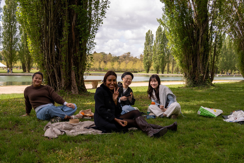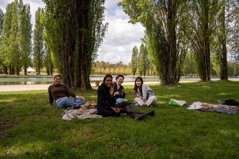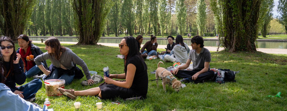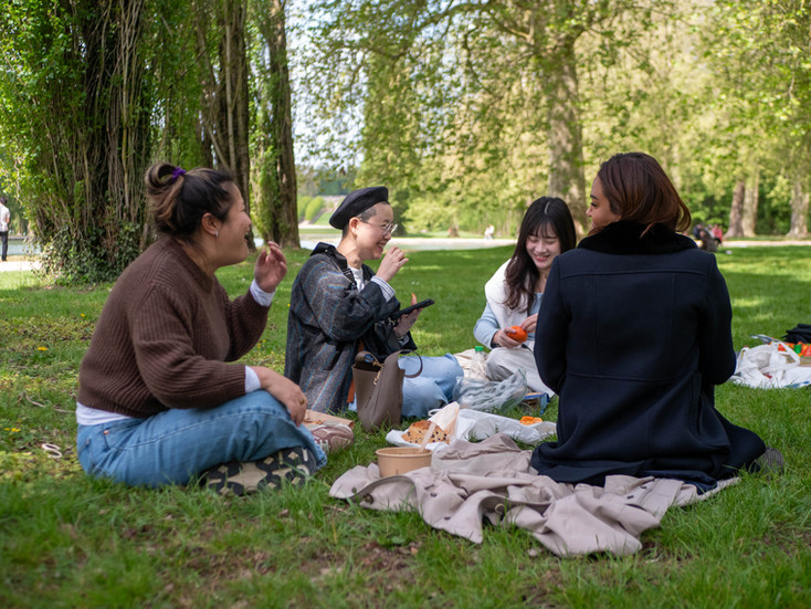 The Linguistic Picnic: There's nothing like sharing French specialties (baguette, cheese, pastries) under the pink cherry trees to loosen tongues and strengthen bonds of friendship between students from all over the world.
